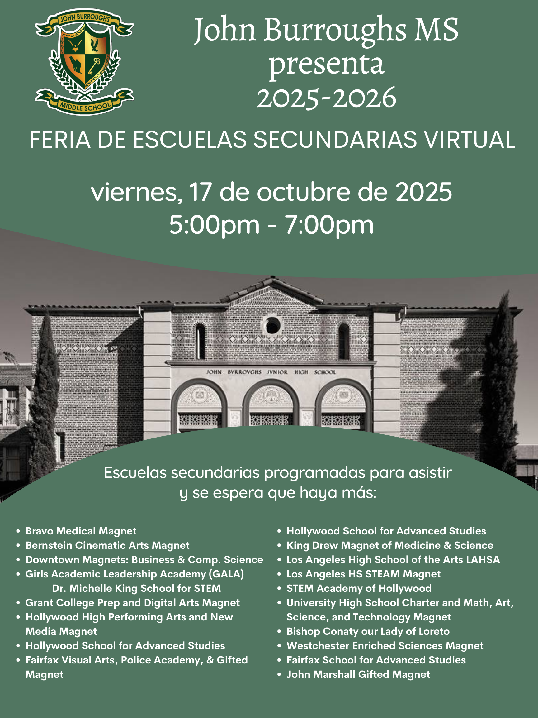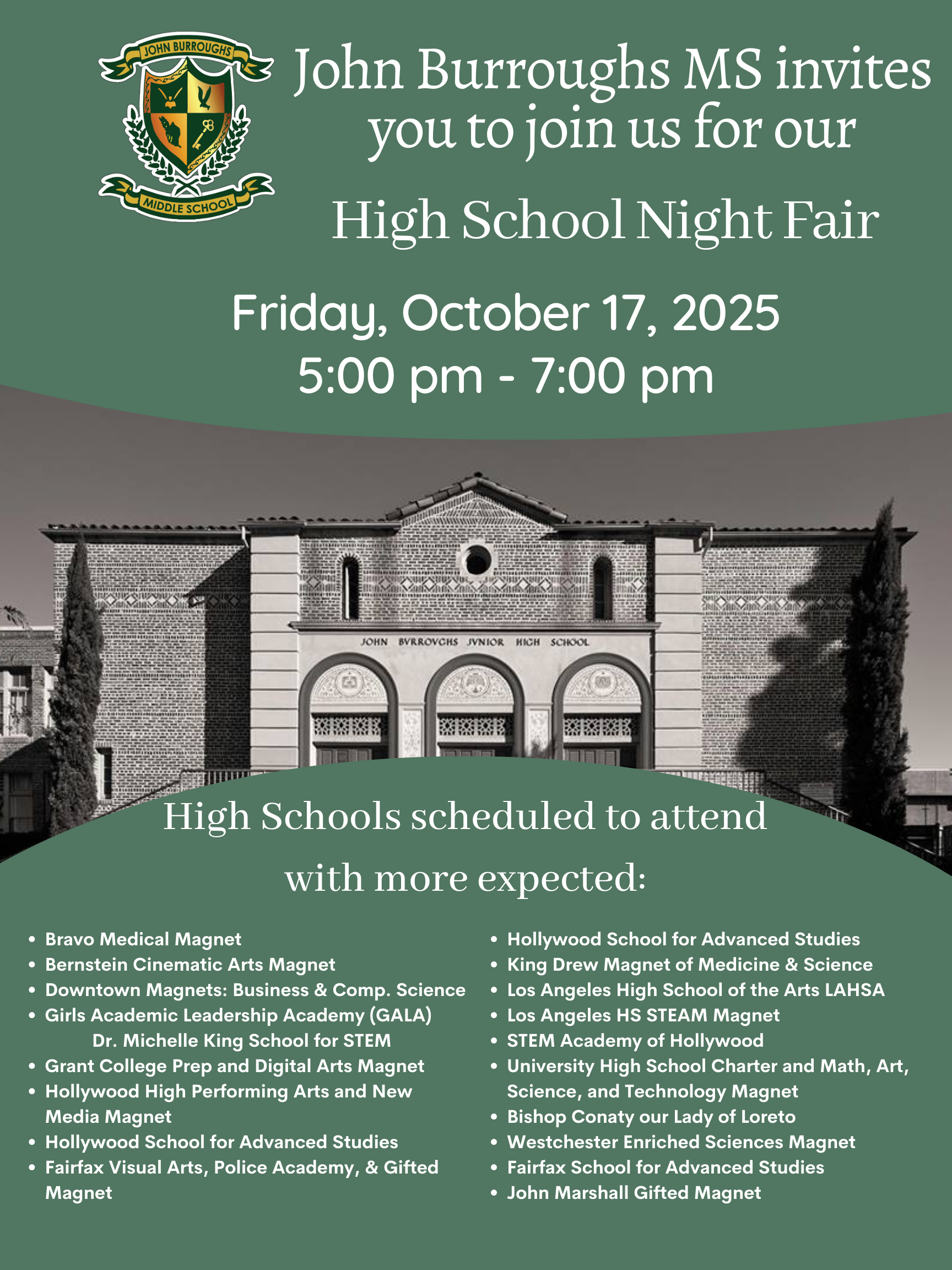 John Burroughs High School Night Fair 2025 Dear JB Parents, Please see attached. Thank you. Attached Files 2025-2026 HIGH SCHOOL NIGHT.pdf