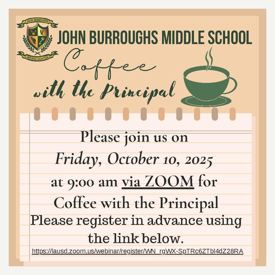 Join us for Coffee with the Princpal via Zoom at 9am on Friday, October 10, 2025 Register for Coffee with the Principal Attached Files 2025_10_10__Coffee with the Principal_ENG.pdf 2025_10_10__Coffee with the Principal_KOR.pdf 2025_10_10__Coffee with the Principal_SPN.pdf